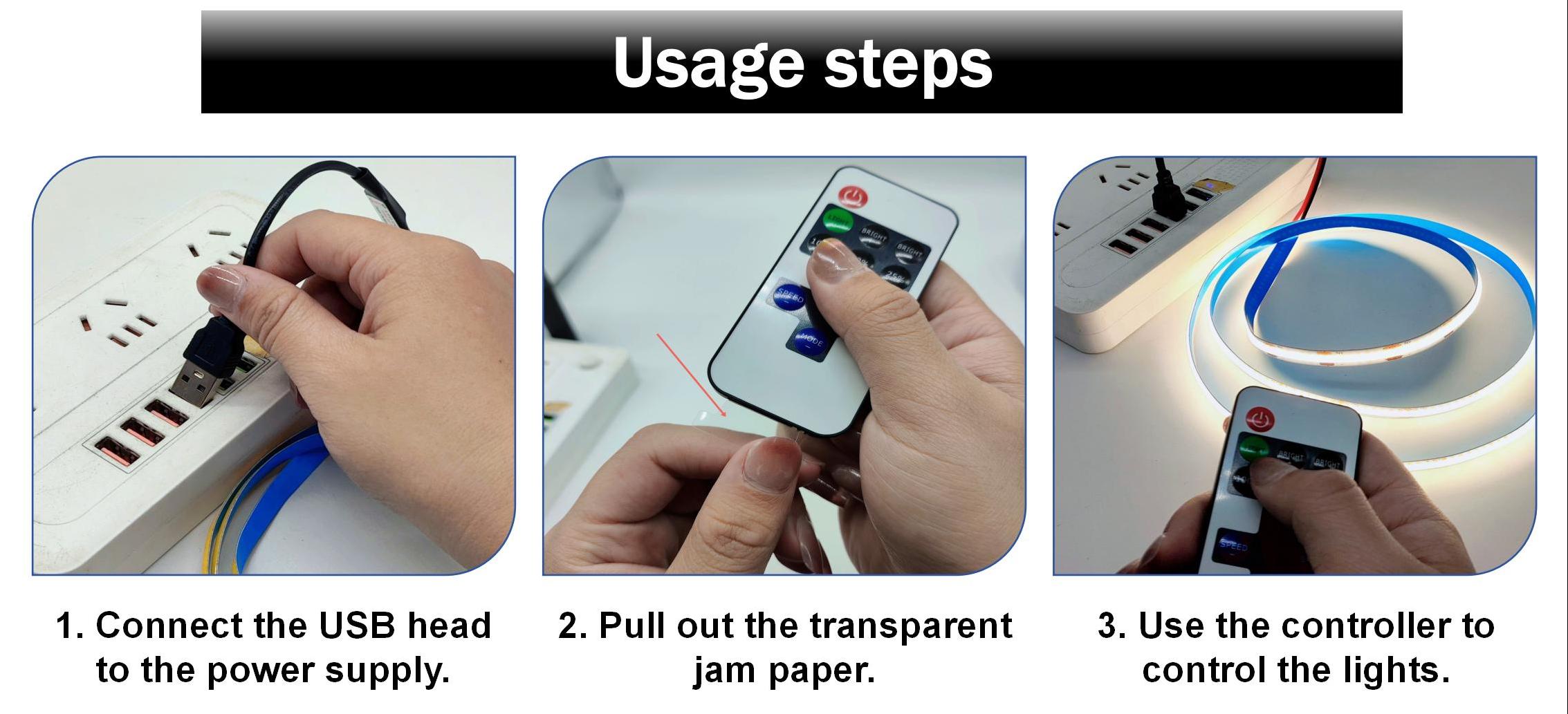 5V USB కాబ్ లైట్ స్ట్రిప్ కిట్ ఎలా ఉపయోగించాలి
