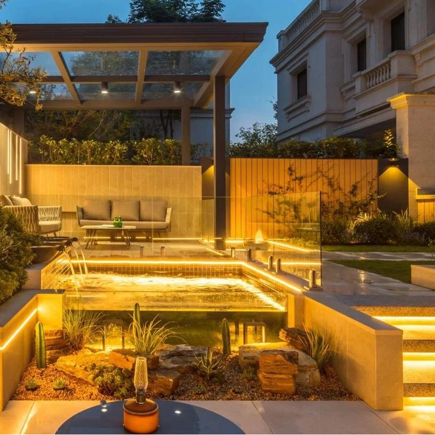 (3) విల్లా టెర్రేస్ లైటింగ్:వెచ్చని మరియు సౌకర్యవంతమైన రాత్రి వాతావరణాన్ని సృష్టించడానికి 3000 కే రంగు ఉష్ణోగ్రత ఎంచుకోండి.